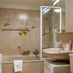 Within the in-room media amenities, there is a TV set. Comforts like a bathtub and a separate toilet area also provided.